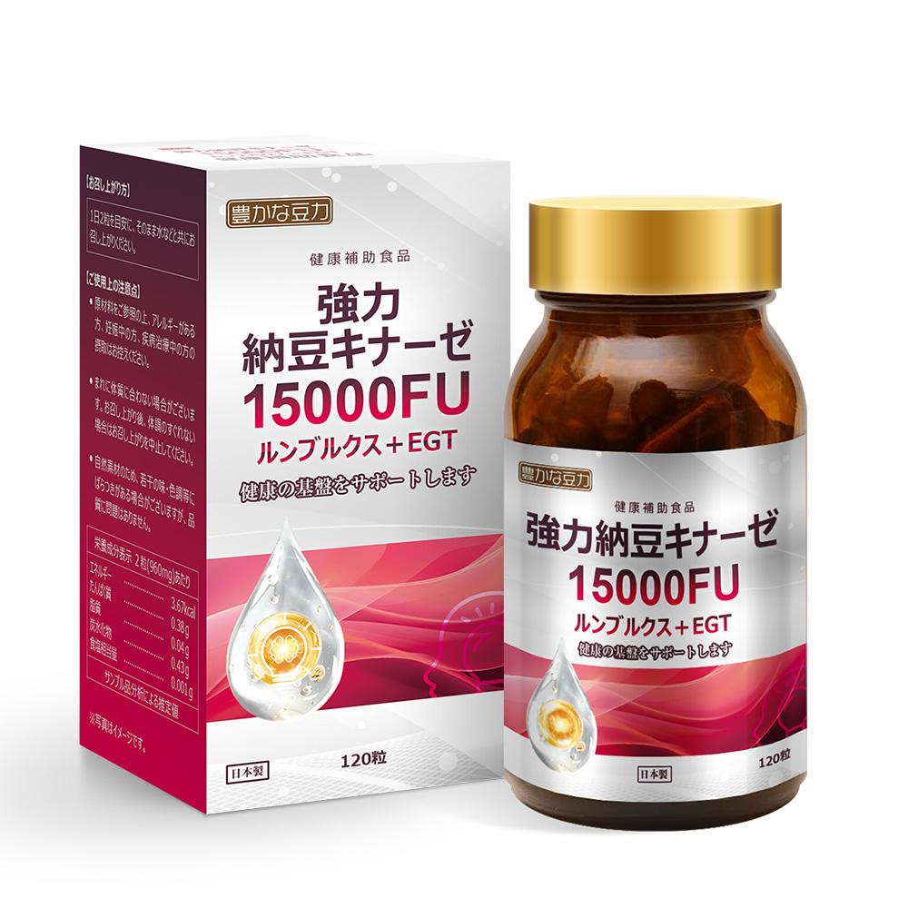 | 商品名 | 豊かな豆力 強力納豆キナーゼ 15000FU ルンブルクス+EGT 酵素 なっとう サプリメント 120粒 |