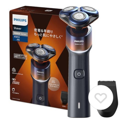 | 商品名 | フィリップス 電気シェーバー 5000Xシリーズ (27枚刃・360-Dフレックスヘッド) X5012/05 オレンジ/アドリアブル |